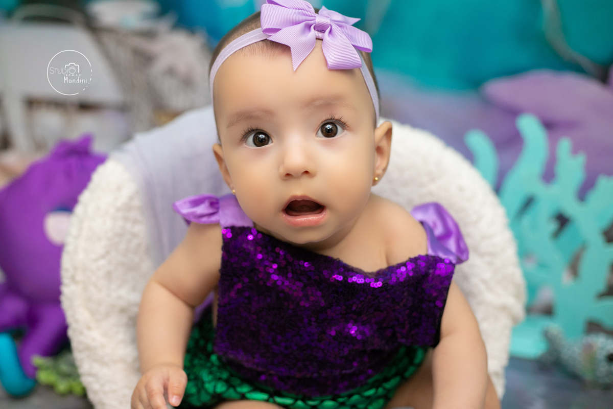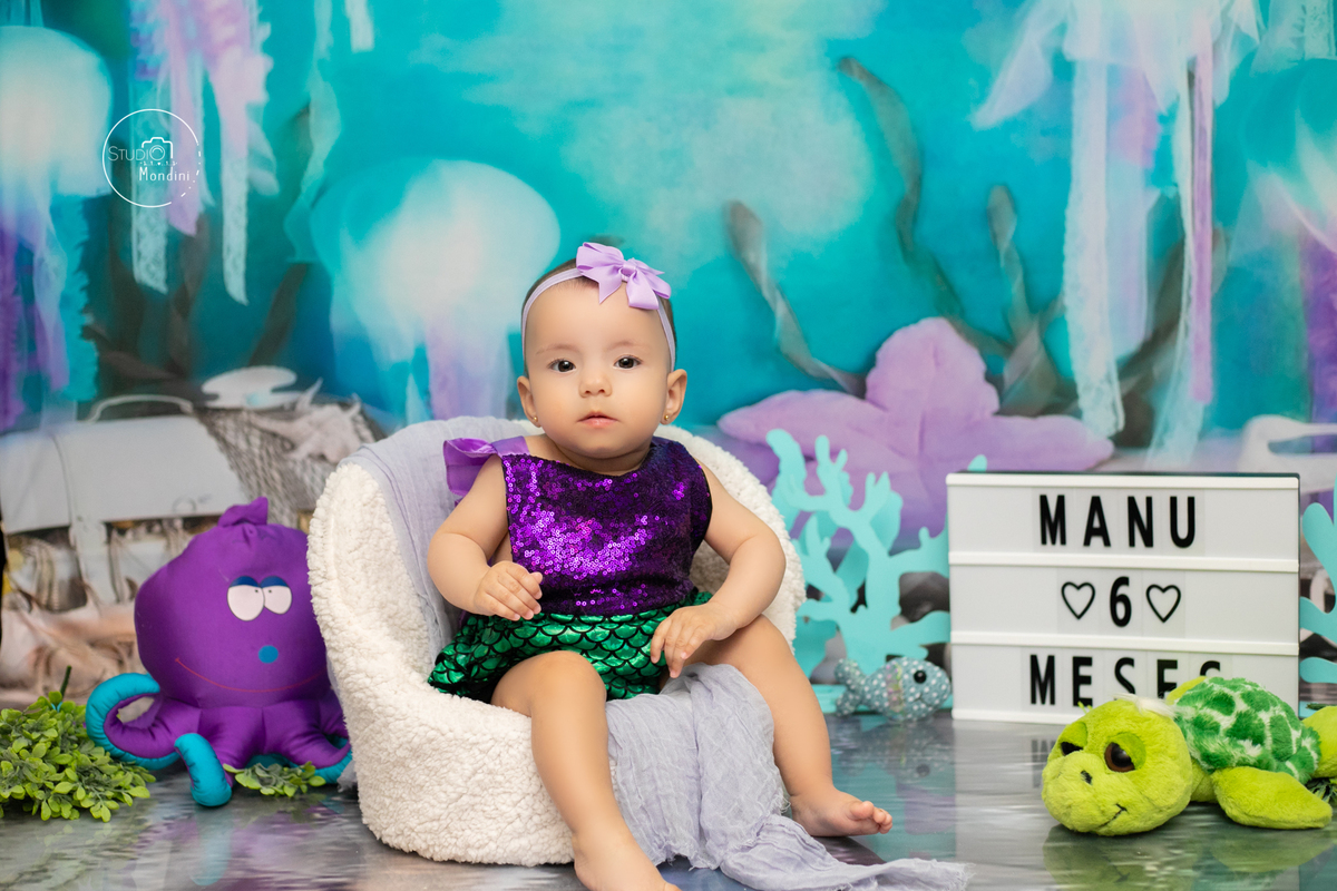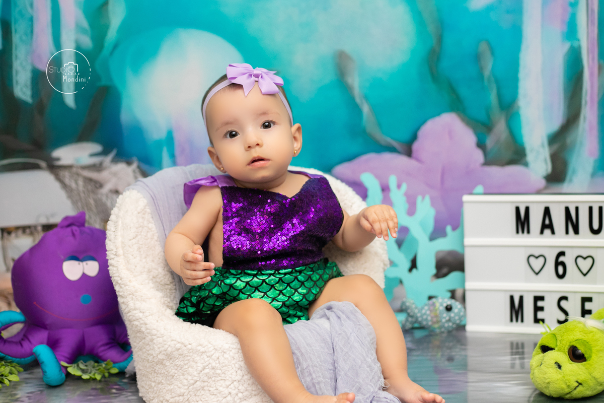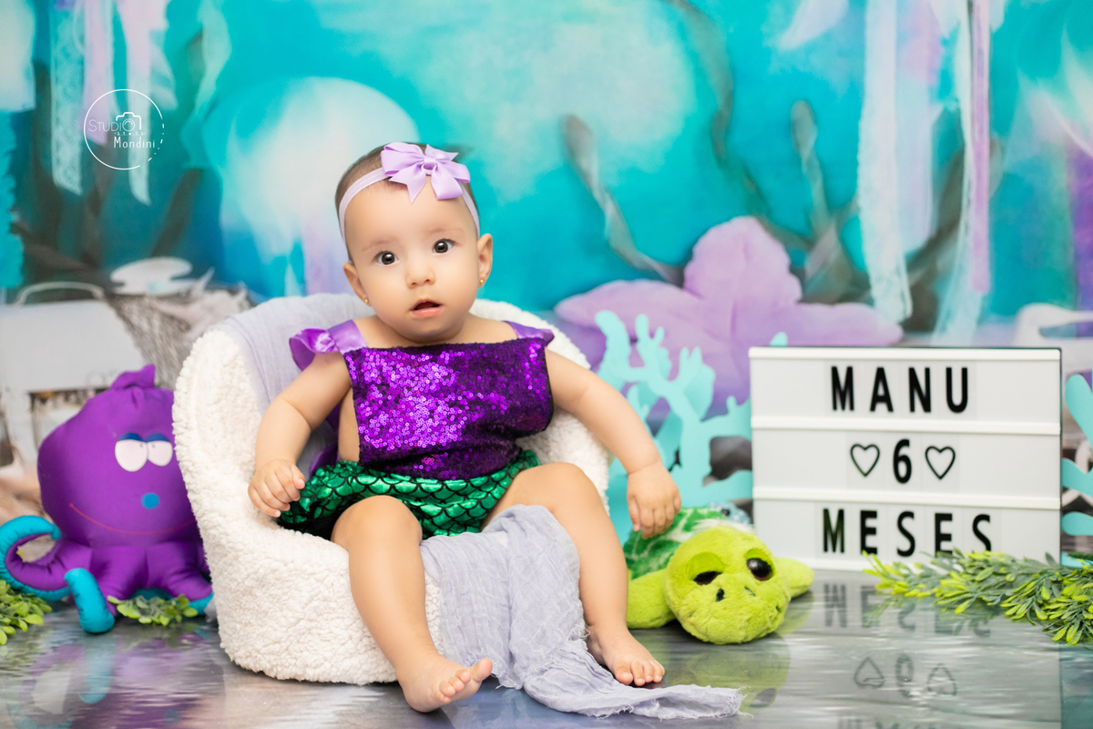 E neste mês a mamãe Ju escolheu o tema fundo do mar, e a Manu brilhou como sereia!